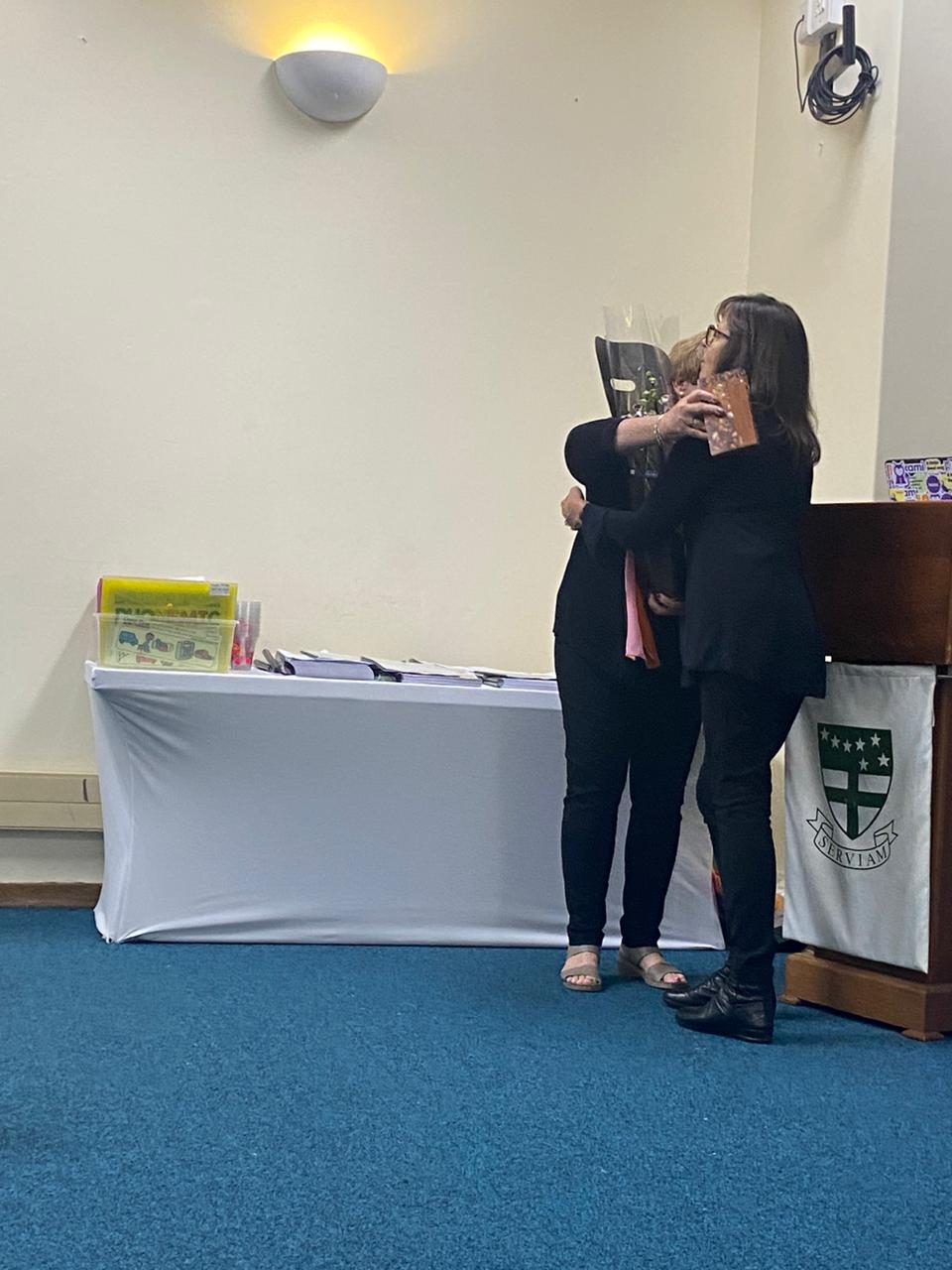 Liza Cloete, who won the R500 Exclusive Books voucher at Makeda Phekani’s recent webinar being congratulated by Shirley Gray, chairperson of SAALED.